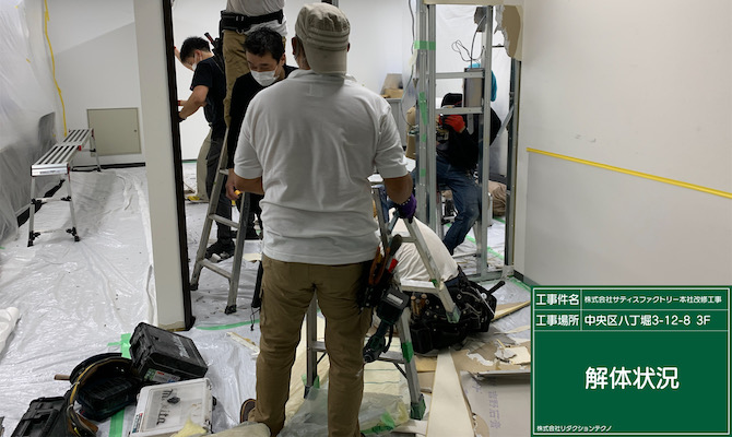 壁撤去・床撤去・廃材搬出・電気設備の作業を一元管理!