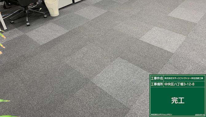 養生を確実にすることで周辺のタイルカーペットを汚すこと無く間仕切り壁の撤去を実施しました。